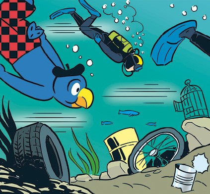 Das Echo in den Medien war einmal mehr sehr positiv. Ebenfalls sehr gut kam die Kooperation mit Globi an. Seine physische Präsenz auf der Rathausbrücke zusammen mit Umweltspezialisten der Wasserschutzpolizei führte zu vielen leuchtenden Kinderaugen und war die logische Konsequenz aus dem 2016 veröffentlichen Buch „Globi und der Goldraub“. Darin führt Globi auf zwei Seiten selber eine Limmatputzete durch.